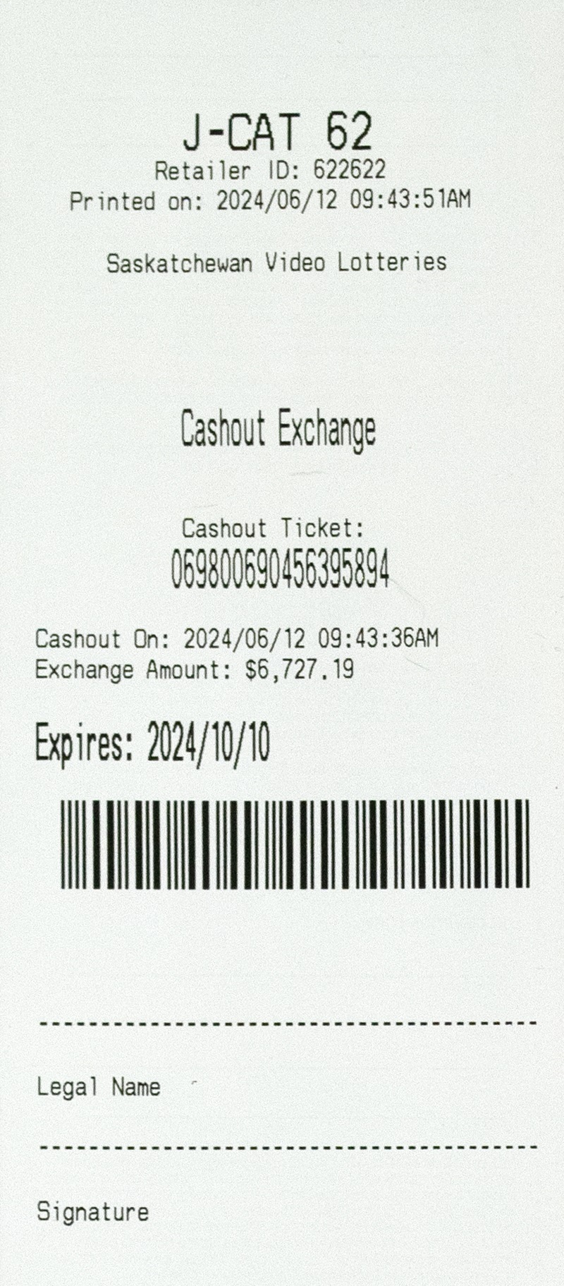 Cashout tickets cannot be redeemed online.