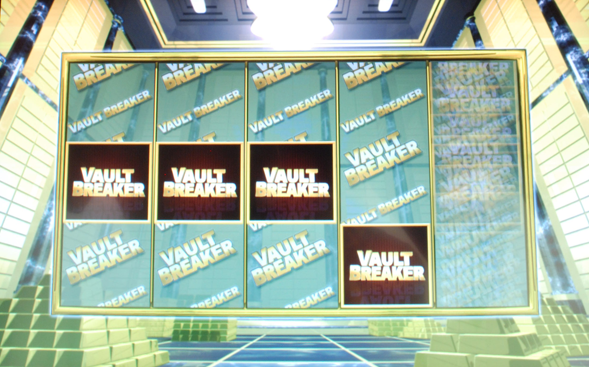 If the mini reel lands on the Vault Breaker symbol the bonus round is activated and the game will transition to the Vault Breaker screen for a chance to hit 3, 4, or 5 Vault Breaker symbols; awarding the Minor, Major or Grand jackpots respectively.