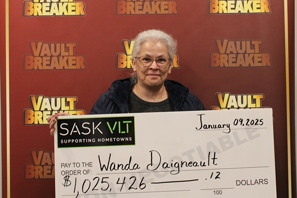 Saskatoon, SK – Western Canada Lottery Corporation (WCLC) is pleased to announce a Vault Breaker jackpot prize awarded by the Saskatchewan VLT program. Wanda Daigneault of Île-à-la-Crosse was awarded $1,025,426.12 after winning the grand jackpot on Vault Breaker at Stonebridge Tavern in Saskatoon on January 9.