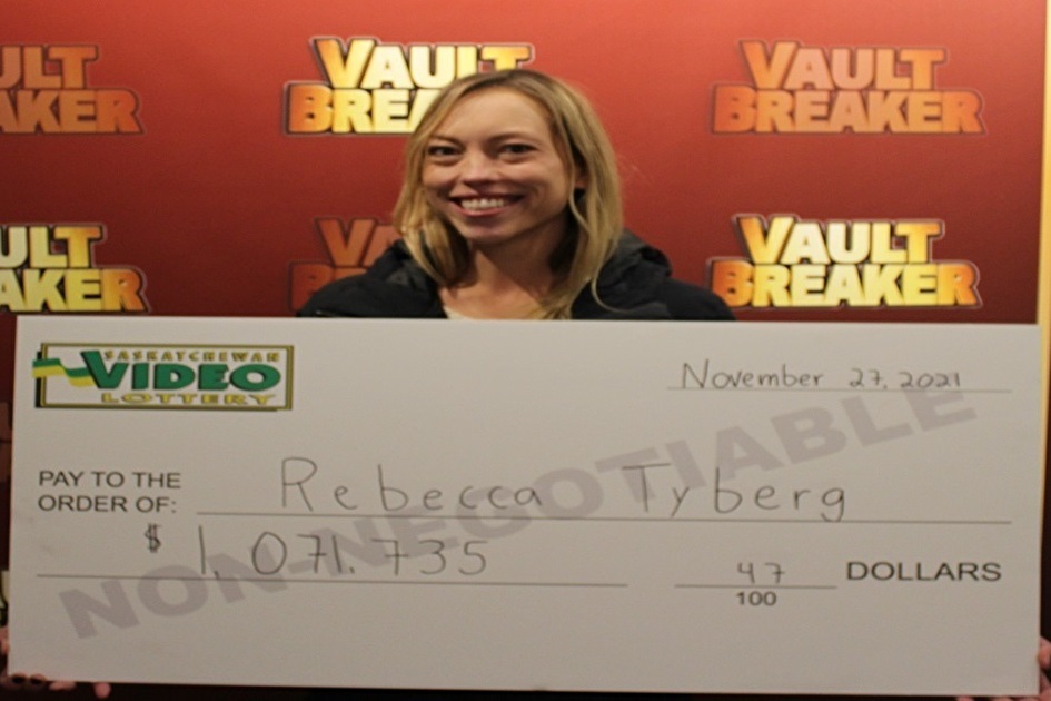 Saskatoon, SK – Western Canada Lottery Corporation (WCLC) is pleased to announce a Vault Breaker jackpot prize awarded by the Saskatchewan VLT program. Rebecca Tyberg of Success was awarded $1,071,735.47 after winning the grand jackpot on Vault Breaker at Springs Garden Restaurant and Lounge in Swift Current, Saskatchewan on November 27.