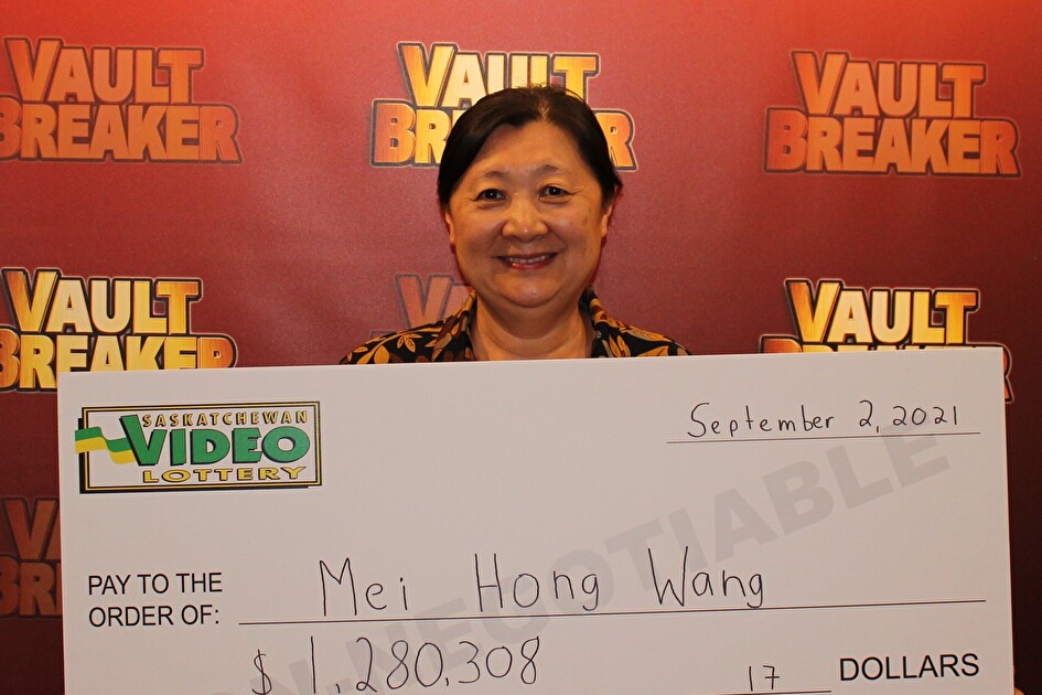 Saskatoon, SK – Western Canada Lottery Corporation (WCLC) is pleased to announce a Vault Breaker jackpot prize awarded by the Saskatchewan VLT program. Mei Hong Wang of Nokomis was awarded $1,280,308.17 after winning the grand jackpot on Vault Breaker at Nokomis Pizza in Nokomis, Saskatchewan on September 2.