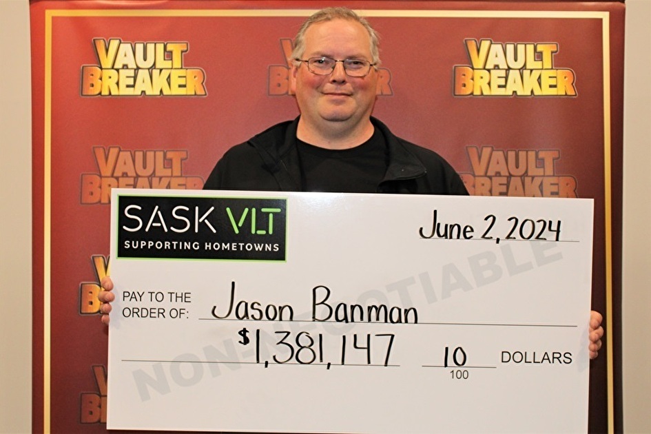 Saskatoon, SK – Western Canada Lottery Corporation (WCLC) is pleased to announce a Vault Breaker jackpot prize awarded by the Saskatchewan VLT program. Jason Banman of Saskatoon was awarded $1,381,147.10 after winning the grand jackpot on Vault Breaker at Dublin’s Irish Pub in Saskatoon on June 2.