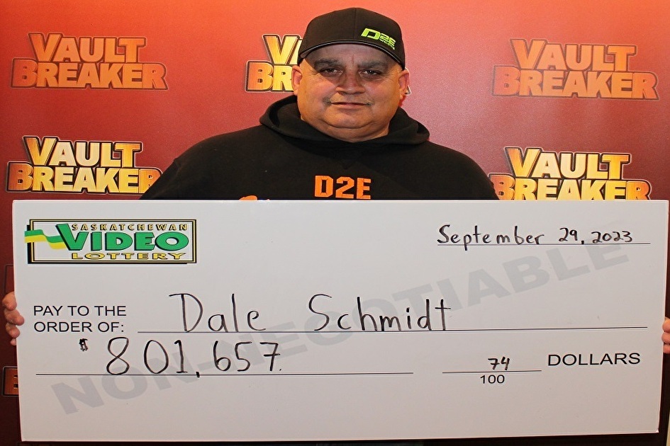 Weyburn, SK – Western Canada Lottery Corporation (WCLC) is pleased to announce a Vault Breaker jackpot prize awarded by the Saskatchewan VLT program. Dale Schmidt of Weyburn was awarded $801,657.74 after winning the grand jackpot on Vault Breaker at Detour Bar & Grill in Weyburn on September 29.